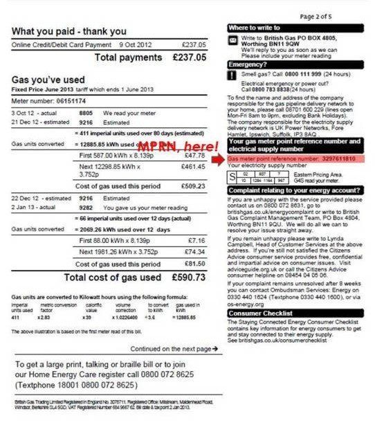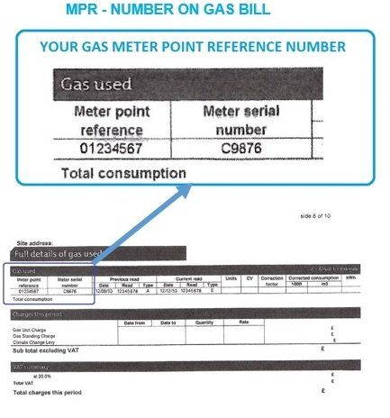 Do not confuse the MPR number with the gas supplier account number or the meter serial number printed on the gas meter. The format of a MPR is standard. It is between 6-10 numerical digits long and should be in a similar format to this -