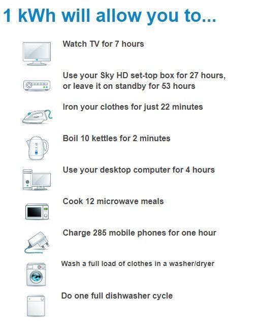 To know how much energy you're using you have to consider how long you run your appliances. When you use 1000 watts for an hour, that's a kilowatt-hour, for example: